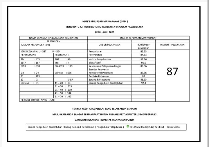 INDEKS KEPUASAN MASYARAKAT TRIWULAN 2 ( APRIL – JUNI ) 2025 Navigasi pos INDEKS KEPUASAN MASYARAKAT INDEKS KEPUASAN MASYARAKAT